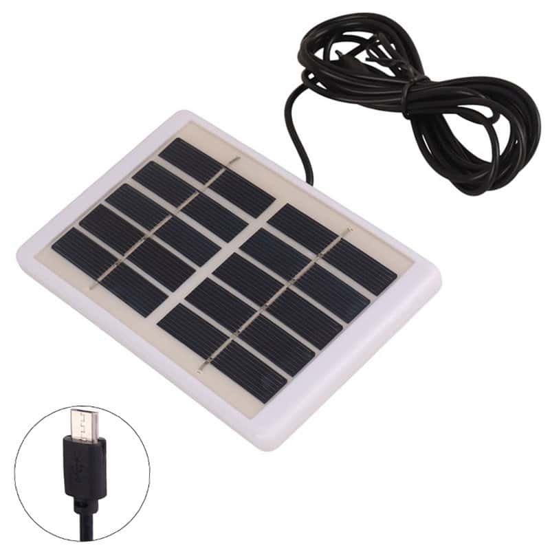 مجهز به رنگ نور مهتابی، شدت جریان ورودی 1 آمپر در 5 ولت با توان 38 وات، دارای پنل خورشیدی