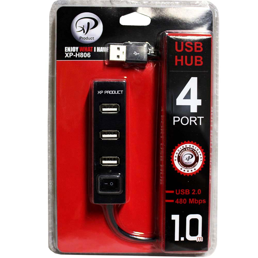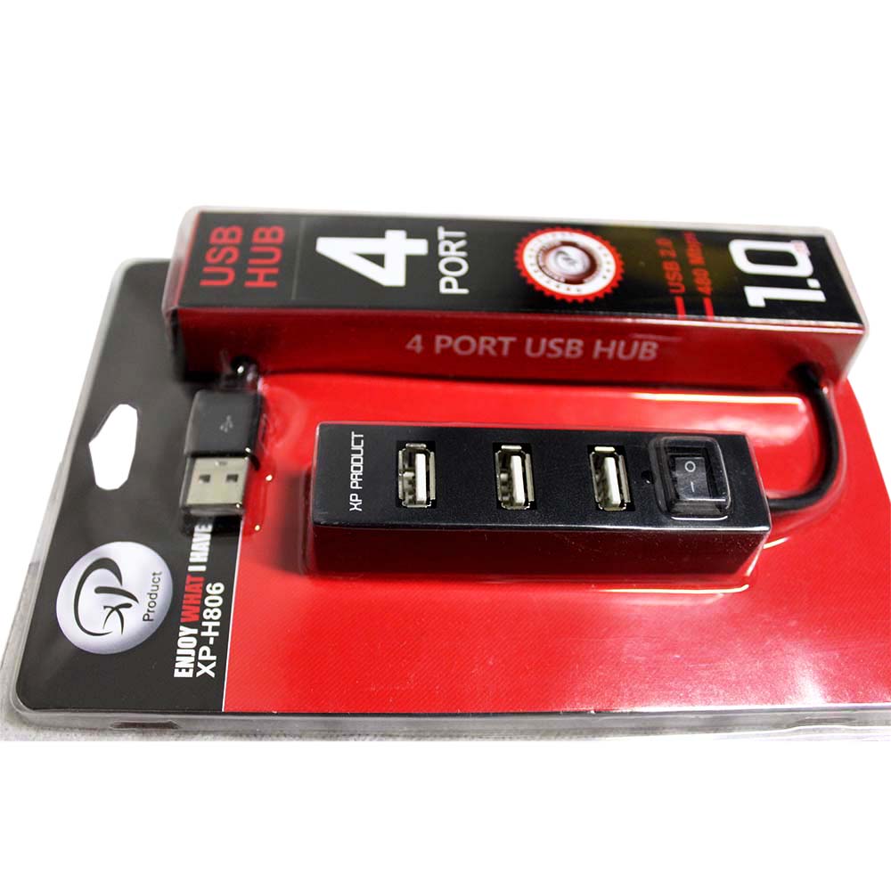 هاب USB چهار پورت اکس پی مدل ۸۰۶طول کابل همراه: یک متردارای کلید قطع/وصل